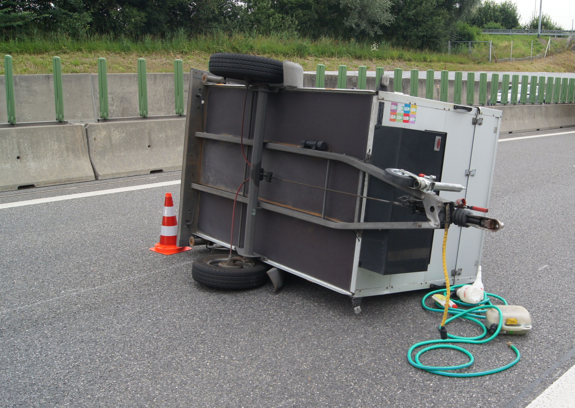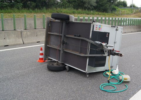 Auf der Autobahn A4a ist ein Anhänger eines Autos in ein anderes Fahrzeug geprallt und umgekippt. Verletzt wurde niemand.