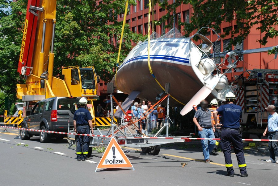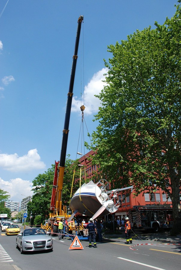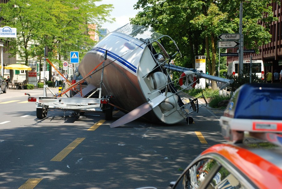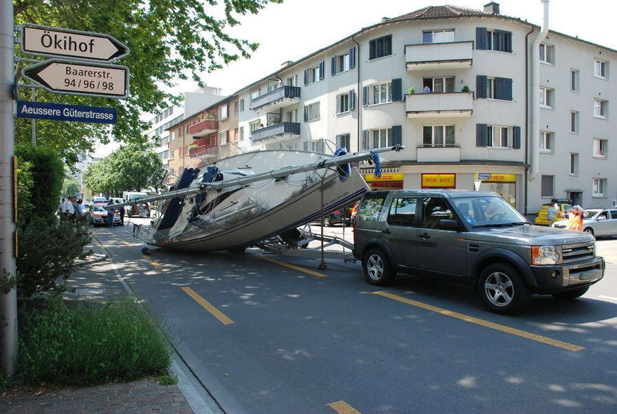 Mit einem nicht alltäglichen Schiffsunglück haben sich am Dienstagmittag (29. Mai 2012) die Zuger Einsatzkräfte konfrontiert gesehen. Eine Segelyacht war vom Anhänger gefallen und auf die Baarerstrasse gestürzt.