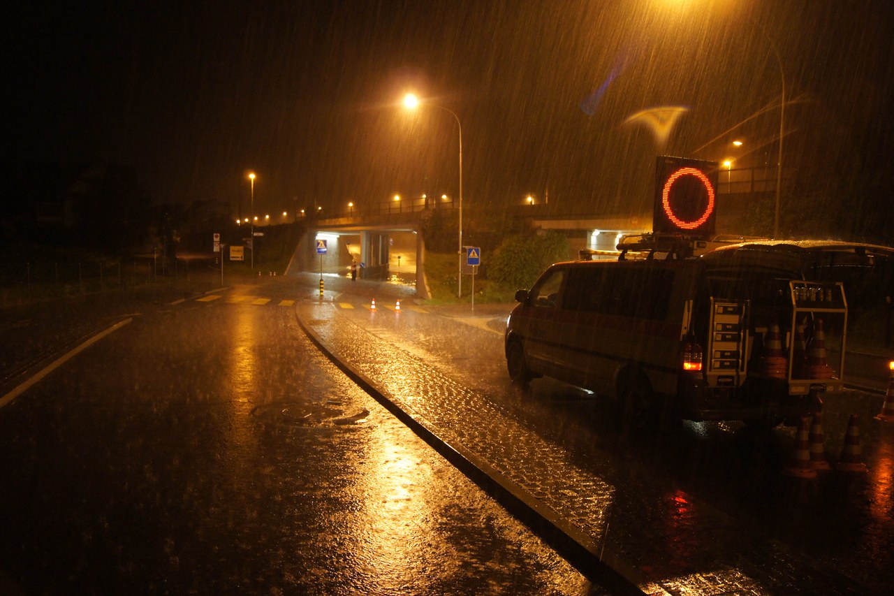 Wegen der starken Regenfälle ist es in der vergangenen Nacht zu mehreren Feuerwehreinsätzen gekommen. Betroffen waren vor allem die Gemeinden Zug, Steinhausen und Hünenberg. Weiter missachtete ein Autofahrer ein Fahrverbot und blieb in einer überfluteten Bahnunterführung stecken.
