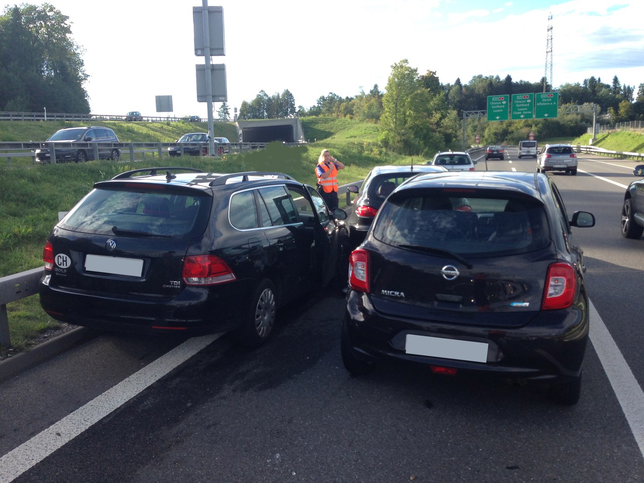 Kurz vor 17:30 Uhr kam es auf der Autobahn A4a, kurz vor der Blegikurve in Fahrtrichtung Luzern, zu einem Auffahrunfall mit vier beteiligten Fahrzeugen. Ein 35-jähriger Autofahrer realisierte zu spät, dass sich der Verkehr vor ihm gestaut hatte und prallte gegen das Heck des vor ihm stehenden Autos, welches in ein drittes geschoben wurde. Dieses wiederum prallte in ein viertes Fahrzeug. Verletzt wurde niemand. An den vier Autos entstand Sachschaden in der Höhe von rund 40'000 Franken.