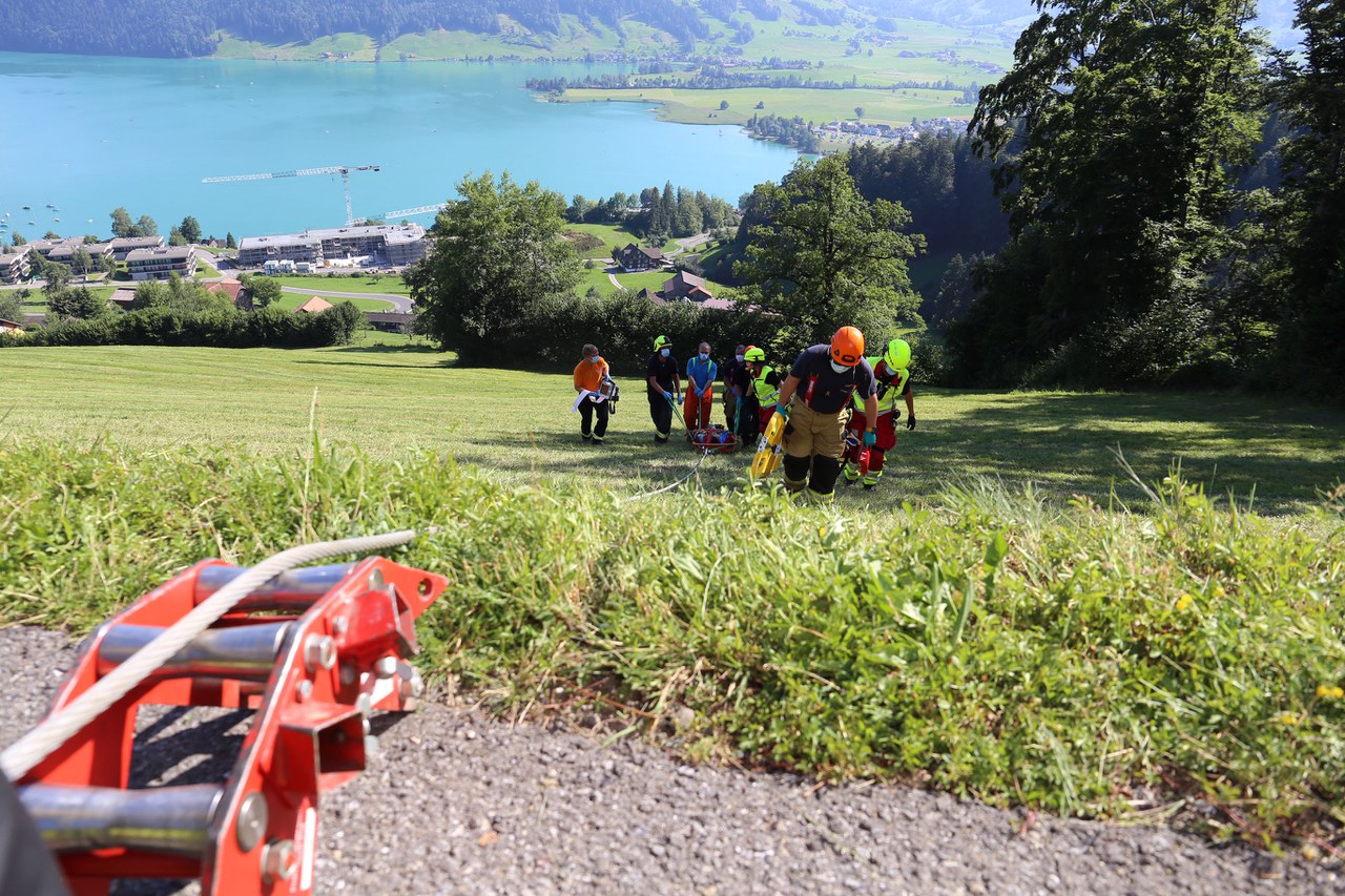 Der Unfall ereignete sich am Freitag (31. Juli 2020), kurz vor 16:15 Uhr, auf der Schneitstrasse in der Gemeinde Oberägeri. Ein 27-jähriger Rennradfahrer stürzte bei der Talfahrt und blieb im angrenzenden Wiesland liegen. Dabei verletzte er sich erheblich. Bevor er mit dem Rettungsdienst ins Spital eingeliefert werden konnte, musste er von der Feuerwehr aus dem Gelände geborgen werden.