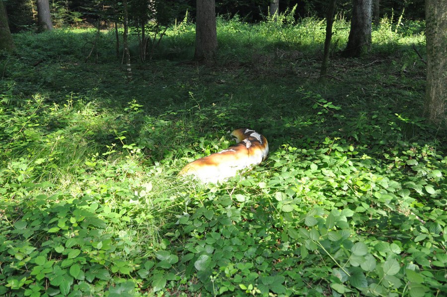 Die "braun gebrannte Bratwurst" ist wieder aufgetaucht. Eine Spaziergängerin fand die Zweimeterwurst in einem Waldstück in der Gemeinde Cham.