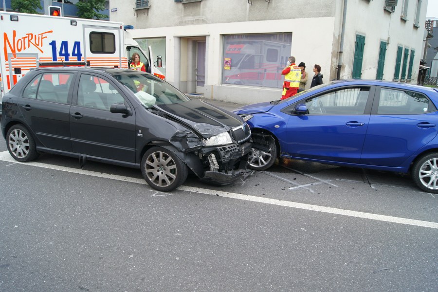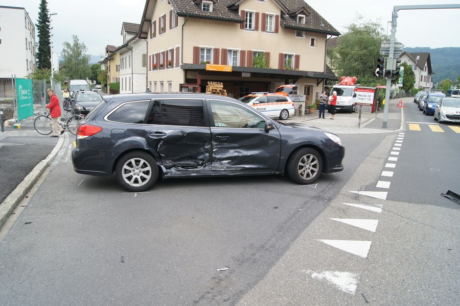 Kurz nach 13:30 Uhr prallten auf der Marktgasse, im Bereich der Büelstrasse, zwei Autos ineinander. Das eine Fahrzeug wurde weggeschleudert und kollidierte mit einem dritten Personenwagen. Der Lenker und die zwei Lenkerinnen sowie eine Beifahrerin verletzten sich beim Unfall. Der Rettungsdienst Zug brachte den Mann (45) und die drei Frauen (30, 41 und 42) ins Spital. Nach ersten Erkenntnissen kamen alle Beteiligten mit leichten Blessuren davon.