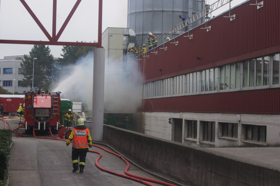 Am Freitag (7. September 2012), gegen 08:45 Uhr, sind in einem Sägemehl-Silo einer Schreinerei an der Neuhofstrasse in Baar Glutnester entdeckt worden. Die Feuerwehr war mit einem Grossaufgebot vor Ort. Die Löscharbeiten gestalteten sich sehr anspruchsvoll. In einer ersten Phase kühlten die Feuerwehrleute das Silo von aussen. Dann machte sich die Atemschutztruppe daran, das Silo auszupacken und mittels Saugwagen das Sägemehl abzusaugen, um an die Glutnester zu gelangen. Als diese mit Luft in Kontakt gerieten, kam es zu mehreren Verpuffungen. Nach rund vier Stunden hatten die Feuerwehrleute das Material abgesaugt und alle Brandherde gelöscht.