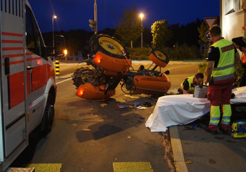 225 / Baar: Traktor überschlägt sich – drei verletzte Jugendliche