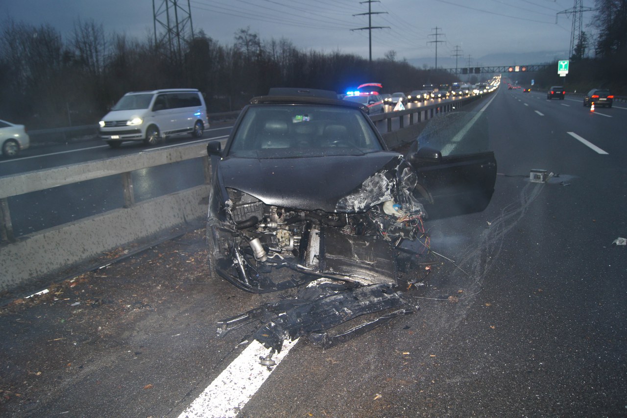 Auf der Autobahn A4 ist eine Autofahrerin in die Mittelleitplanke geprallt. Die Frau wurde schwer verletzt. Der Unfall führte zu grösseren Behinderungen im Feierabendverkehr.