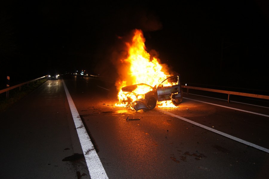 237 / Risch Rotkreuz: Auto brennt nach Unfall aus - sechs Verletzte