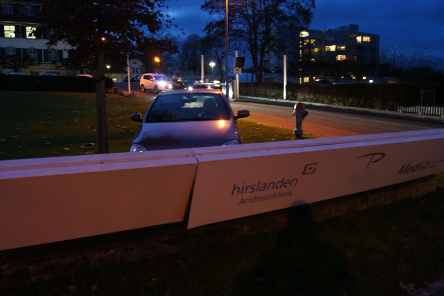 Am Freitagnachmittag (2. Dezember 2011) wollte eine 83-jährige Automobilistin vom Parkplatz der Andreasklinik in Cham in Richtung Rigistrasse fahren. Aus noch ungeklärten Gründen verlor sie die kurz vor 16:00 Uhr die Herrschaft über das Fahrzeug, kam von der Strasse ab und prallte auf der dortigen Wiese frontal gegen eine Anzeigetafel. Die Frau zog sich leichte Verletzungen zu, die gleich gegenüber im Spital behandelt werden konnten.