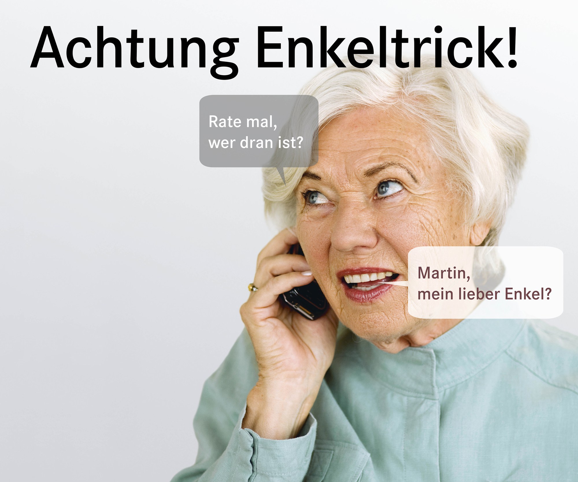 Der «Enkeltrickbetrug» ist besonders hinterhältig. Opfer werden nicht selten um ihre gesamten Ersparnisse gebracht. Im Visier der Enkeltrickbetrüger sind vorwiegend Seniorinnen und Senioren. Die Kriminellen sind psychologisch sehr geschickt und nutzen sowohl die Gutmütigkeit als auch die Ängste älterer Menschen in schamloser Weise aus. Fallen Sie nicht drauf herein!