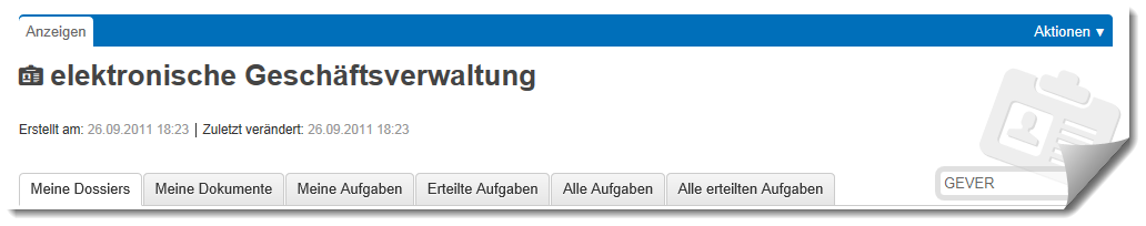 GEVER dient der Verwaltung von dokumentengestützten Geschäften, die nicht ein einer anderen Fachanwendung bewirtschaftet werden. Das zentrale Element von GEVER ist die Aktenführung, damit verknüpft sind Prozesssteuerung und Geschäftskontrolle. GEVER unterstützt insbesondere auch die amtsübergreifende Zusammenarbeit.