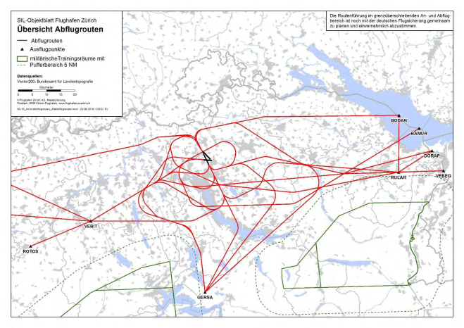 Die Abflüge aus Zürich über dem Kanton Zug werden, so wie heute, wahrnehmbar sein, aber die vom Bund festgelegten Lärmgrenzwerte sowohl während des Tages als auch während der Nacht werden eingehalten.