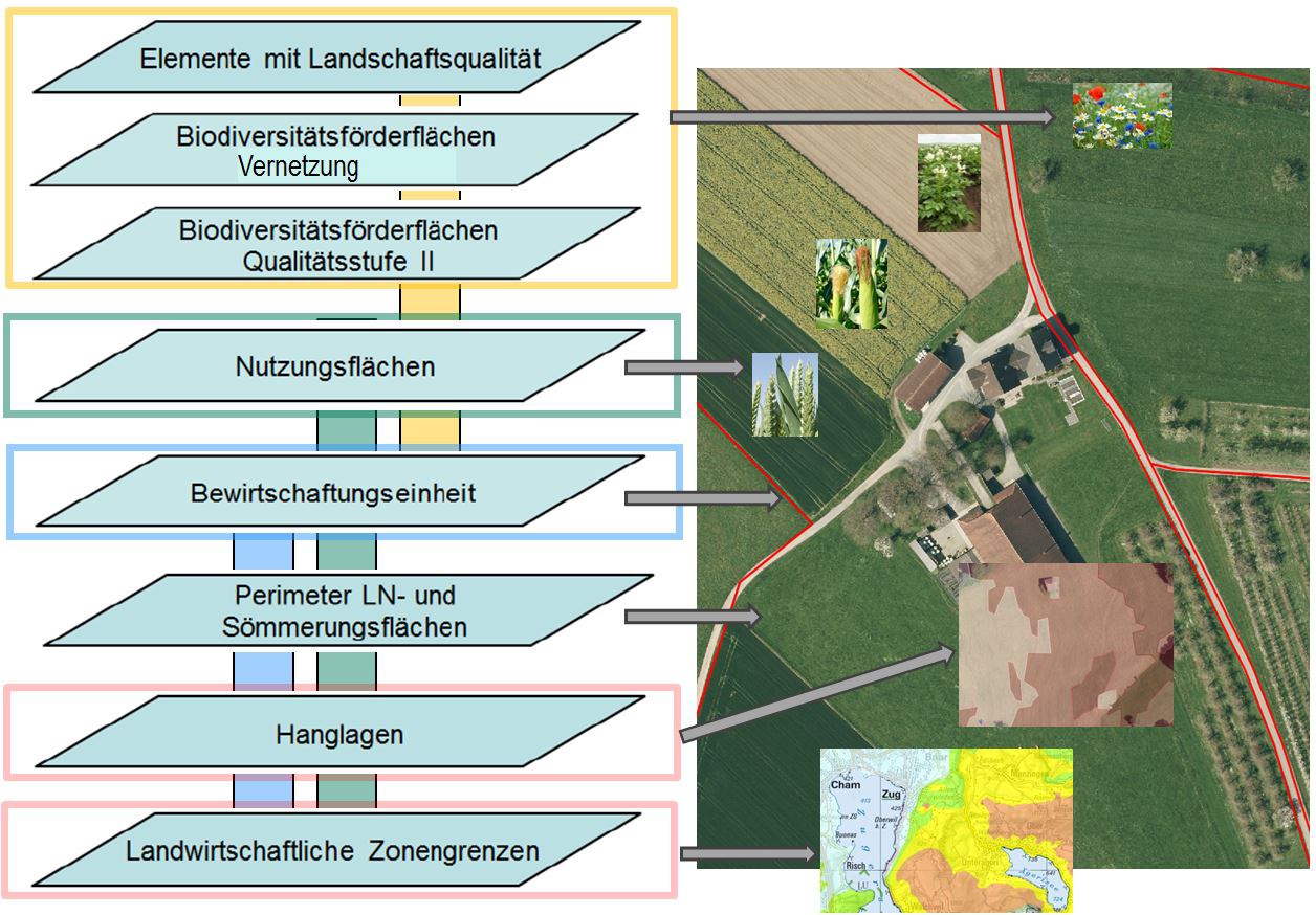 Die Landwirtinnen und Landwirte, das Landwirtschaftsamt und das Bundesamt für Landwirtschaft arbeiten mit einem GIS.
