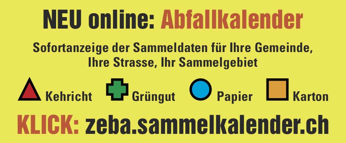 ZebaDer ZEBA (Zweckverband der Zuger Einwohnergemeinden für die Bewirtschaftung von Abfällen) ist im Kanton Zug zuständig für die Abfallbewirtschaftung und Entsorgung.https://publisher-zgch-dev.webcloud7.ch/izug/platform/behoerden/weitere-organisationen/zebahttps://publisher-zgch-dev.webcloud7.ch/izug/platform/logo.png